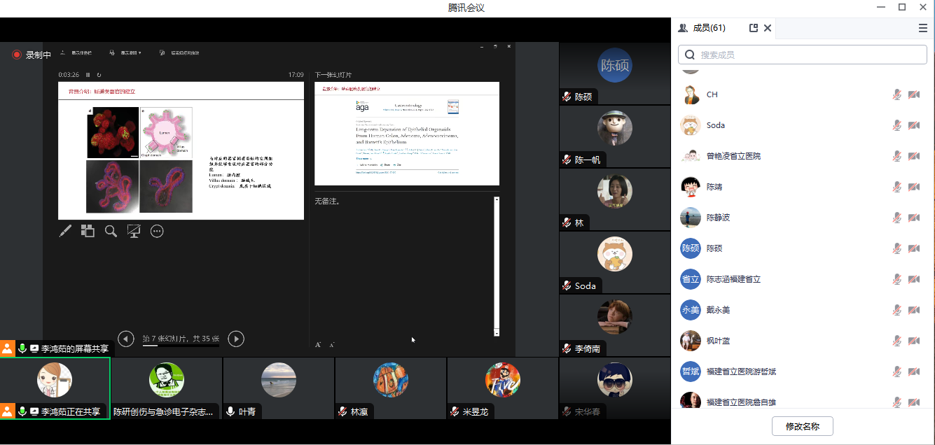 本次讲座得到了院领导的大力支持以及院内院外科研团队的积极响应,我院呼吸与危重症医学科李鸿茹教授分享了类器官模型研究进展学习心得,来自暨南大学张甜甜,中科院查荒源工程师作为嘉宾讲者受邀来院就类器官发展的最新动态以及类器官串联培养芯片的功能进行了讲解。共有百余名我院博硕士、科研骨干参加了本次讲座。