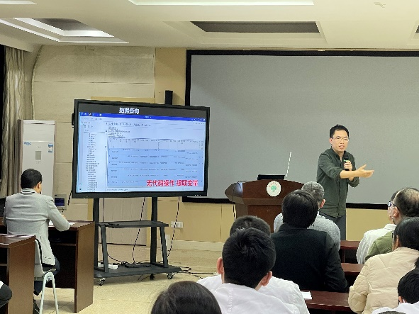 随后,黄基工程师向各位专病库骨干成员介绍了我院信息管理中心在科研服务方面取得的重大升级。黄基工程师以“AI与MIMIC开放数据集的完美融合”为题,介绍了具有我院自主专利的科研服务软件在MIMIC数据集统计分析中的实际应用。该软件以便捷的图形化界面操作代替代码命令,并依靠AI理解自然语言进行统计分析操作,极大地降低临床科研的门槛,有望能应用于我院实际临床科研中,助力我院科研发展。