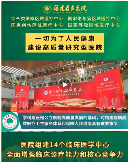 接下来,临床医学中心将以“一中心、两平台、三重点”的理念,融合发展全面提速。一个中心,让优势学科群落地,多学科同台治疗,为患者提供一站式诊疗服务。两大平台,组建大数据及人工智能中心,搭建专病库、标本库,为疑难和危重症患者的诊治打造全新的医疗服务格局。三项重点,持续深化国家区域医疗中心、国家临床重点专科、福建省医学中心建设,打造公立医院高质量发展的标杆,更好地满足人民群众对高水平、高质量医疗服务的需求。