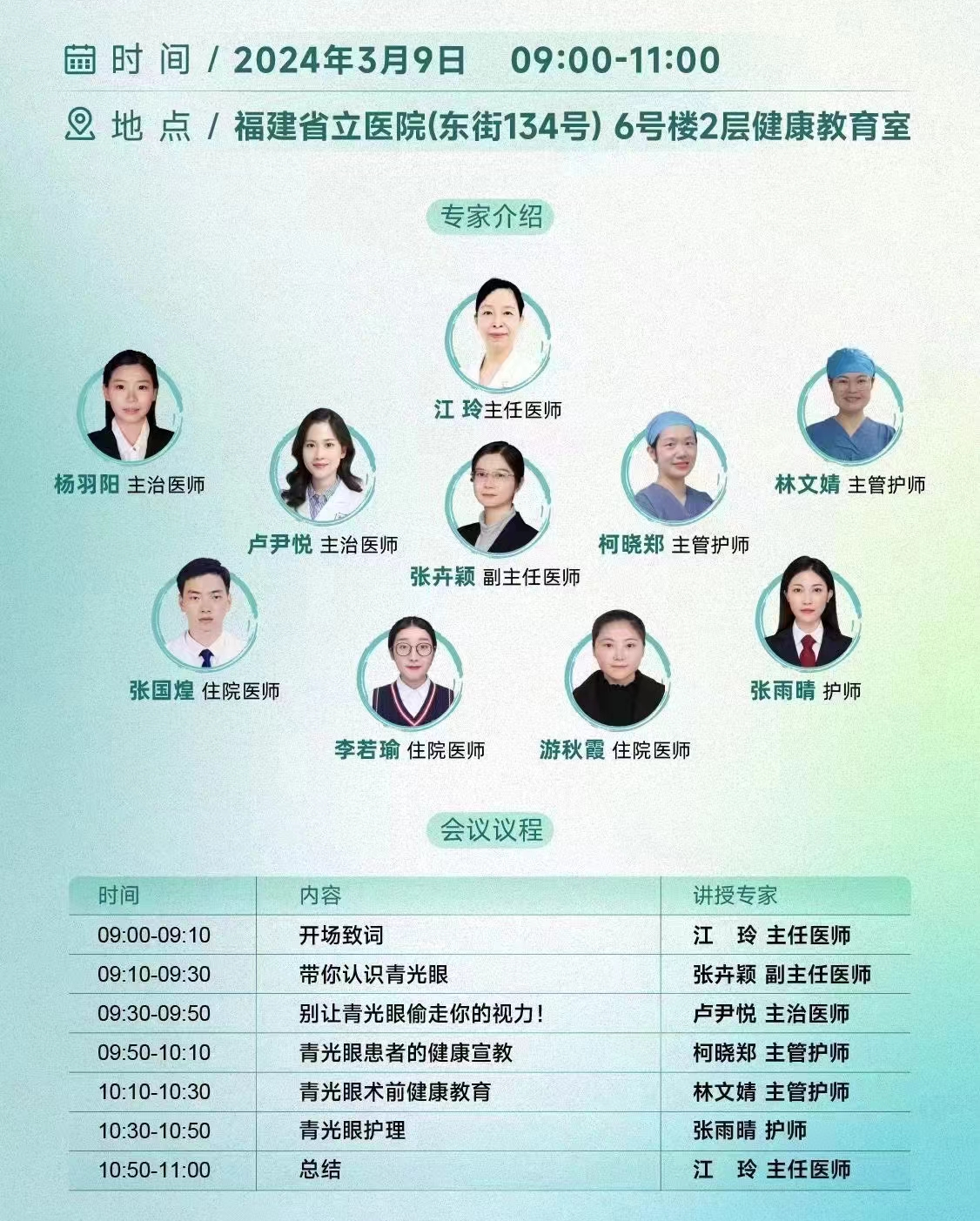 我院眼科已连续十几年举办“世界青光眼日”、“世界青光眼周”宣教活动。今年活动的主题为“共管慢病青光眼,留的光明恒久远”,帮助广大群众认识青光眼、发现青光眼、控制青光眼。期待您的参加!