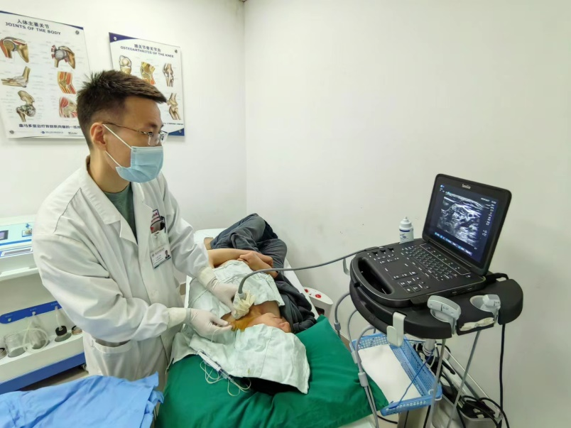 1 先由金山院区疼痛门诊傅少雄主治医师进行超声下臂丛神经阻滞