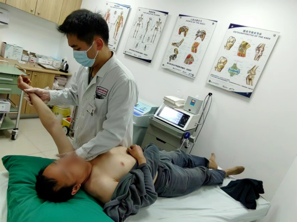 2 随后,金山院区康复科朱宝浩医生进行肩关节手法松解