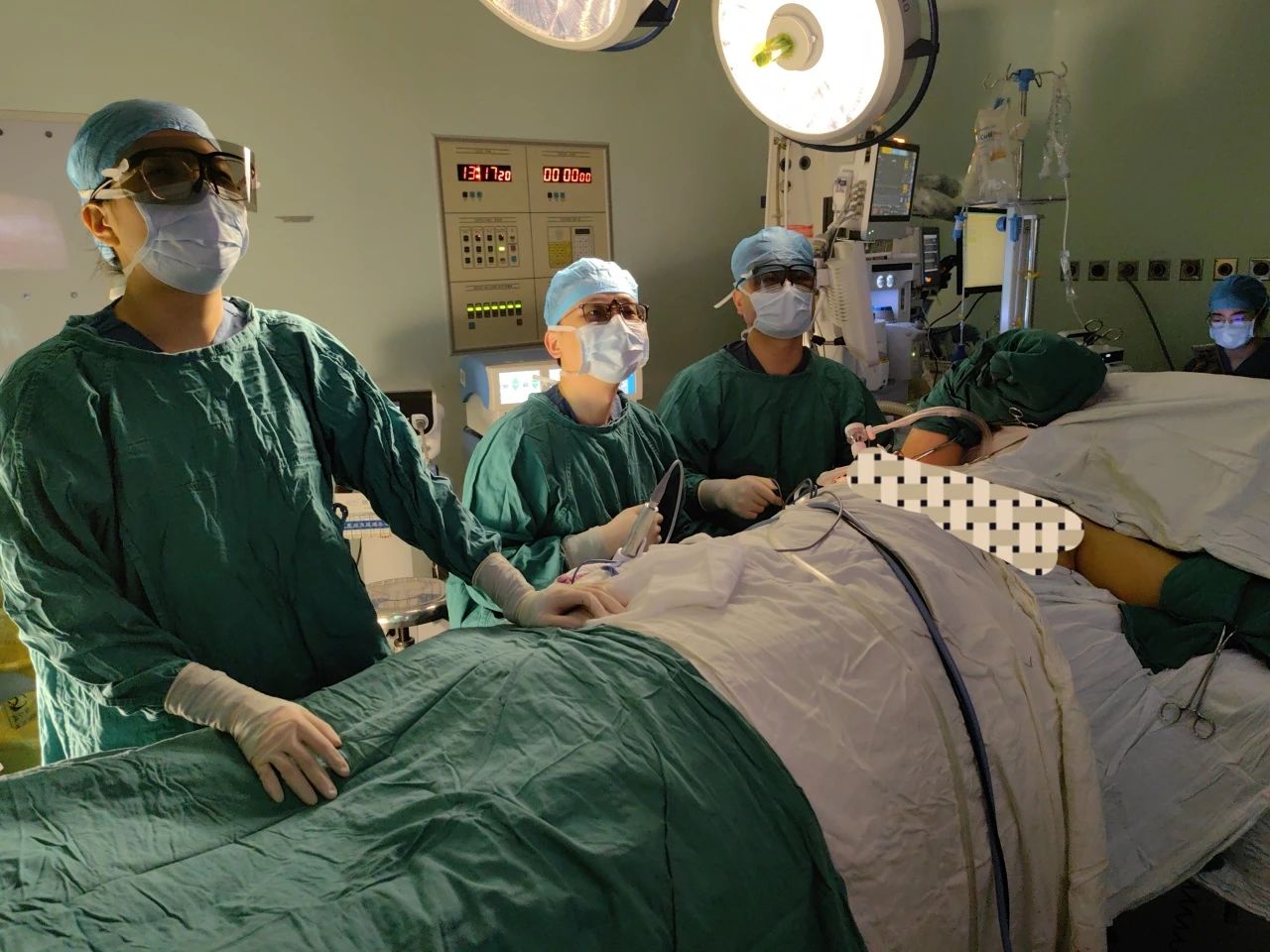 近日, 我院乳腺外科林孟波主任医师、张辉副主任医师团队,利用3D高清腔镜系统,成功开展“腋窝入路单孔腔镜下双侧全乳切除联合假体置入乳房再造术”,精准切除乳腺双侧肿瘤,最大程度保护患者身材。