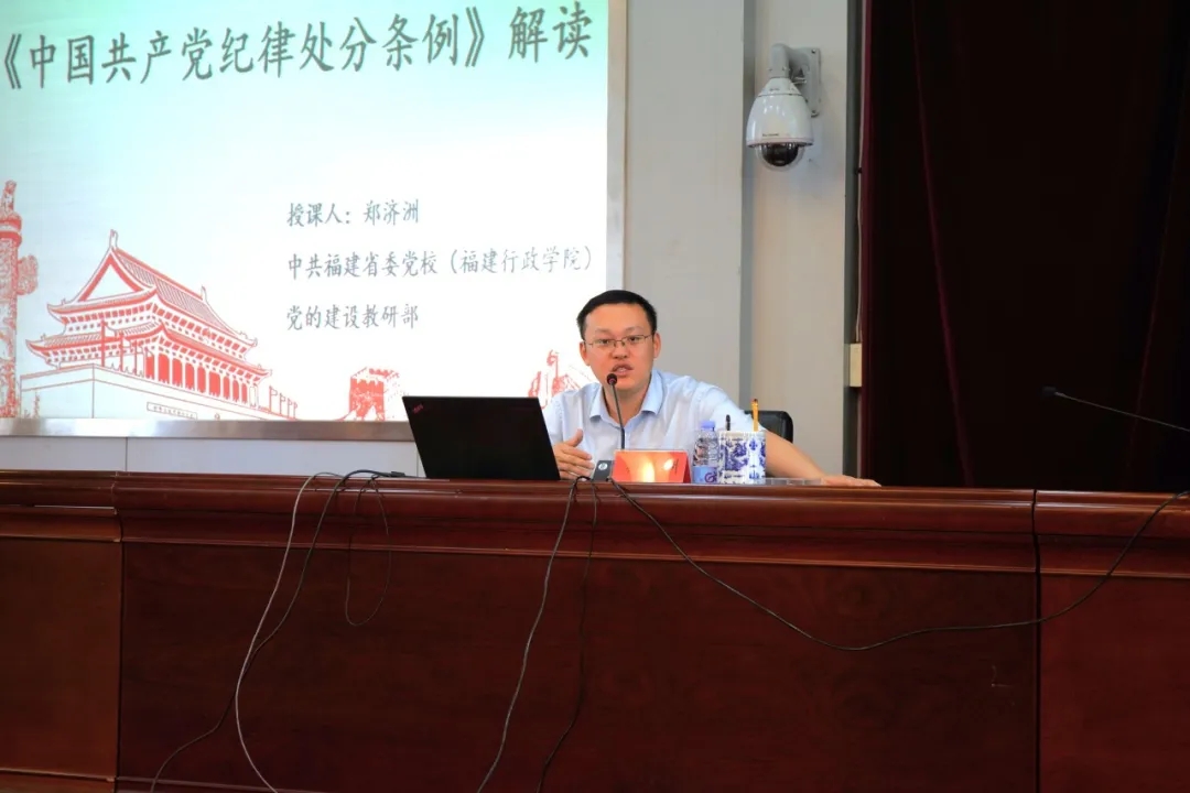 为深入贯彻落实医院党纪学习教育的部署要求,推动党纪学习教育走深走实,引导党员干部自觉做到学纪、知纪、明纪、守纪。今天下午,我院邀请省委党校郑济洲教授作《中国共产党纪律处分条例》(以下简称《条例》)专题讲座。院领导、支部书记、科室负责人及护士长参加讲座,纪委书记程东风主持会议。