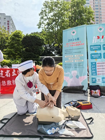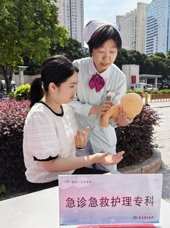 急诊急救护理专科的志愿者们耐心教授群众心肺复苏(CPR)和海姆立克急救法,让每位参与者都能掌握救命技能,成为生命的守护者。