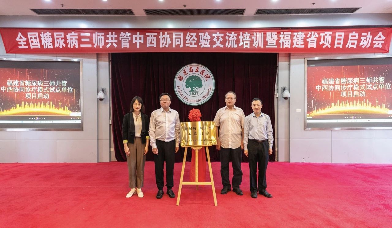 会上,福建省卫健委中医处处长钱新春,我院党委副书记、院长陈刚,厦门大学附属第一医院副院长陈学勤,以及中华中医药学会基层糖尿病防治专家指导委员会主任杨叔禹教授等领导专家共同为“福建省糖尿病三师共管中西协同诊疗模式试点单位项目”揭牌,包括我院在内的全省52个医疗单位纳入其中,这意味着中西协同的糖尿病新型诊疗、健康管理模式在我省全面启动。