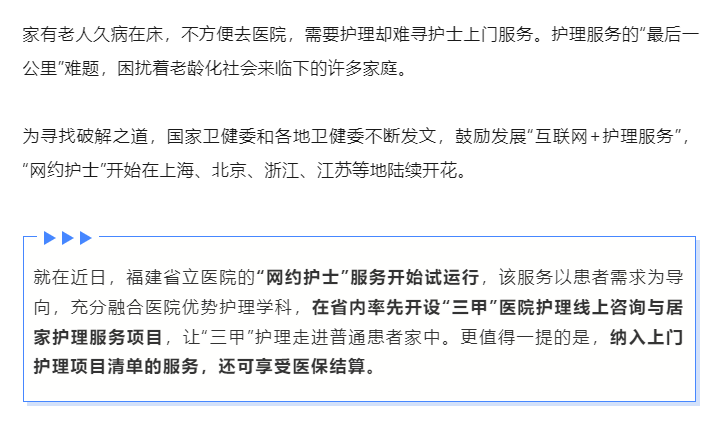 重磅!福建首个三甲医院“网约护士”来了!一键预约上门服务,还能用医保!