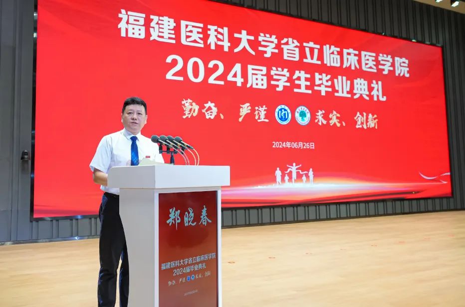 我院党委书记曹华教授向所有毕业生表示热烈的祝贺。回顾过往,福建医科大学和省立临床医学院共同见证了大家从青涩学子到未来医者的蜕变,每一滴汗水、每一次努力,以及家长的辛勤培育与无限期望,都成就了大家的茁壮成长。