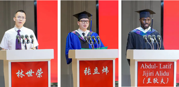 毕业生代表张立炜回顾了在省立临床医学院的学习生活,表达了无论身处何方,都将铭记校训和院训,秉持医者的仁心仁术,将所学应用于实践,为医疗事业贡献力量。