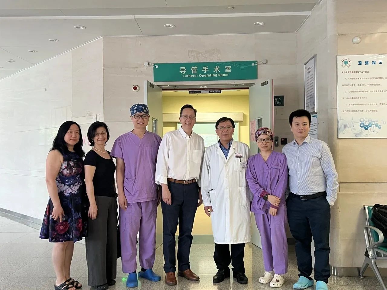 专家们参观了院史馆,并与心血管内科、超声科、放射科、心血管外科等科室负责人和业务骨干进行交流。他们现场观摩了心脏瓣膜病的术前经食道超声评估及心脏外科手术的术中超声引导,参与了心脏瓣膜病、难治性心衰患者的病情讨论和查房,与本院专家共同制定了诊疗方案。Howard Michael Leong-Poi 教授赞赏我院学科发展的综合实力,并表示期待进一步学术合作。心血管内三科吴志勇主任医师主持举办复杂冠心病精准治疗旋磨学习班,加拿大专家集体观摩了冠心病介入团队的手术过程,对我院冠心病介入诊疗水平给予了充分肯定。