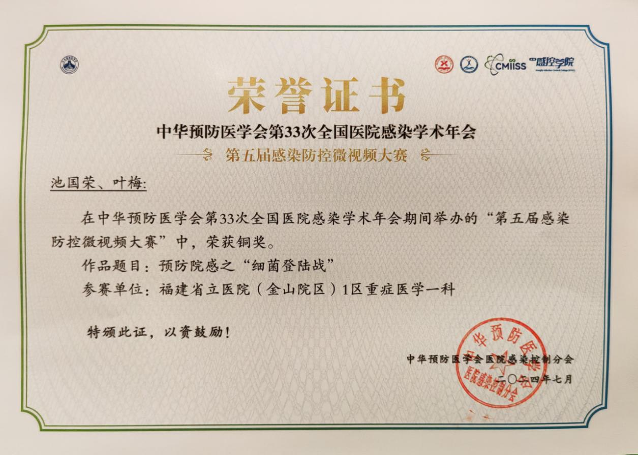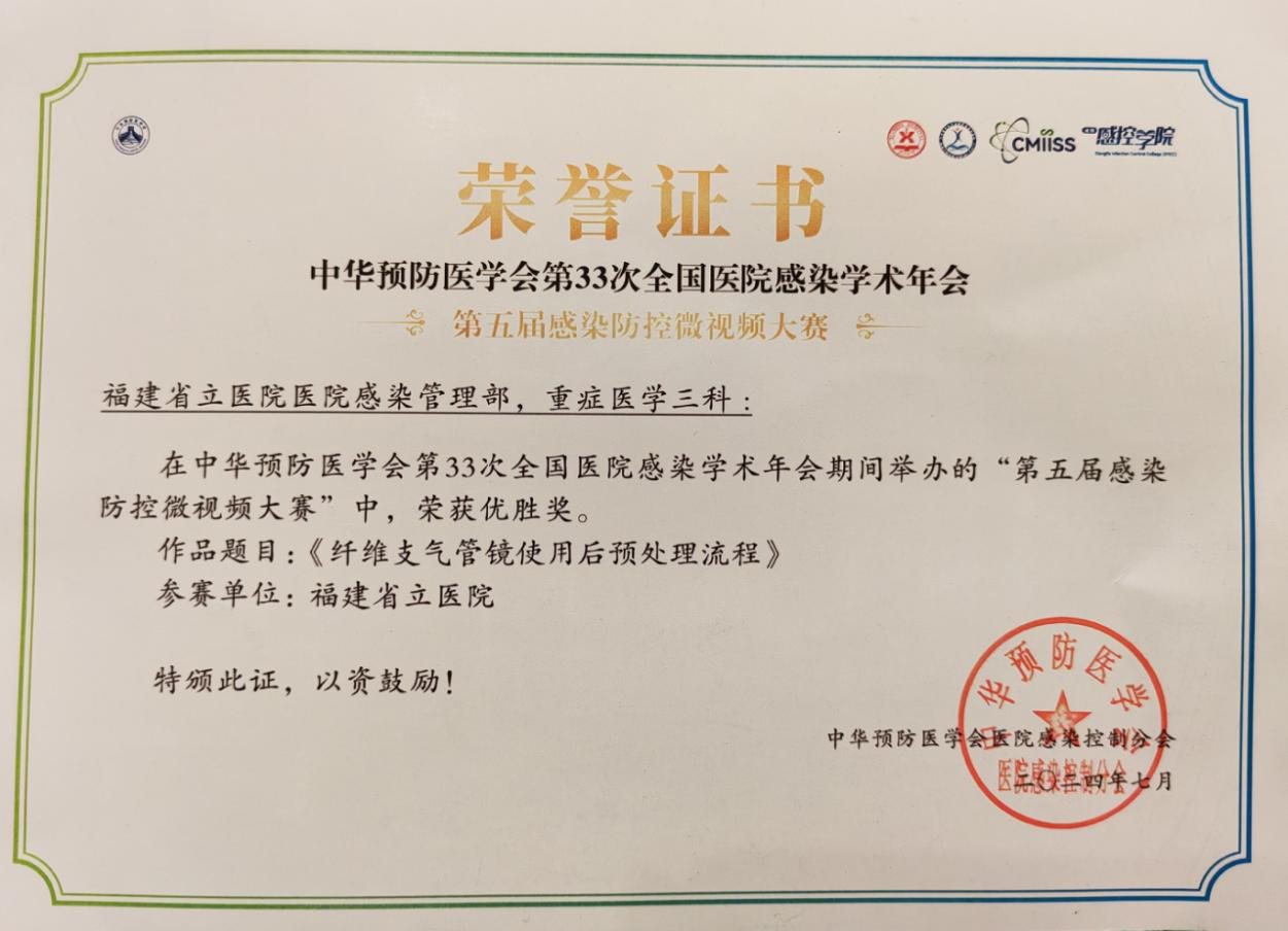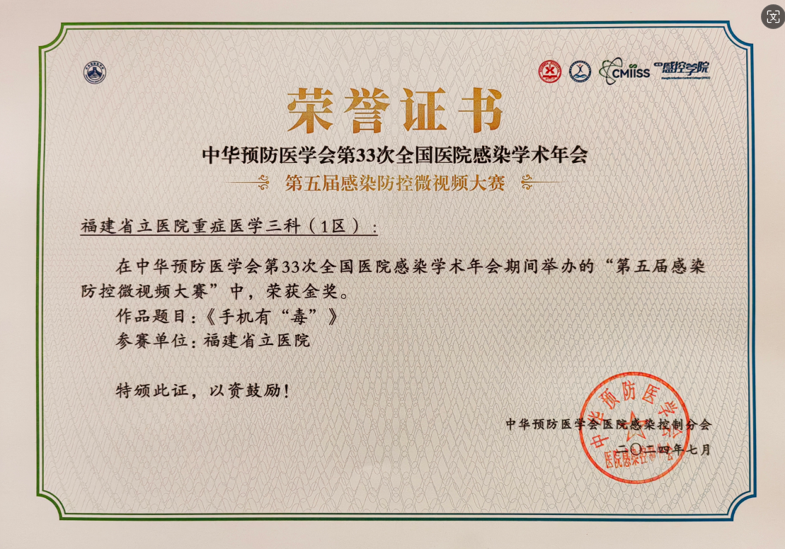 【医院感染管理部】祝贺!福建省立医院代表队荣获全国“感染防控微视频大赛”金奖