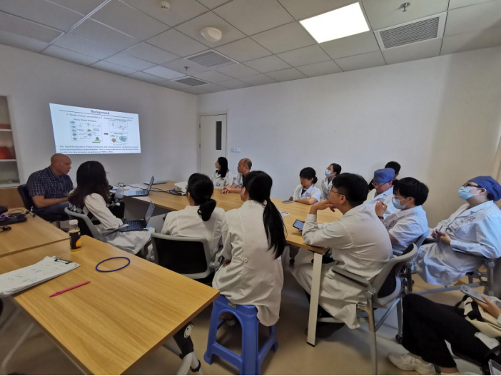 学术交流中,Christopher教授首先分享团队最新肺炎克雷伯耐药机制进展,本次分享的是将在不同省份环境中分离到的肺炎克雷伯菌与我院分离到的耐碳青霉烯类肺炎克雷伯菌(CRKP)进行耐药机制对比研究。我院专家介绍了医院分离的CRKP等病原菌出现金属耐药的可能机制,以及该研究今后往临床转化的方向。