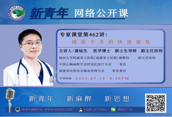 近日,全国新青年网络专家讲堂邀请我院麻醉医学中心龚灿生博士直播授课《减重手术的快速康复》,同期在线听课人数达3万余人次,课后交流讨论踊跃,好评如潮。