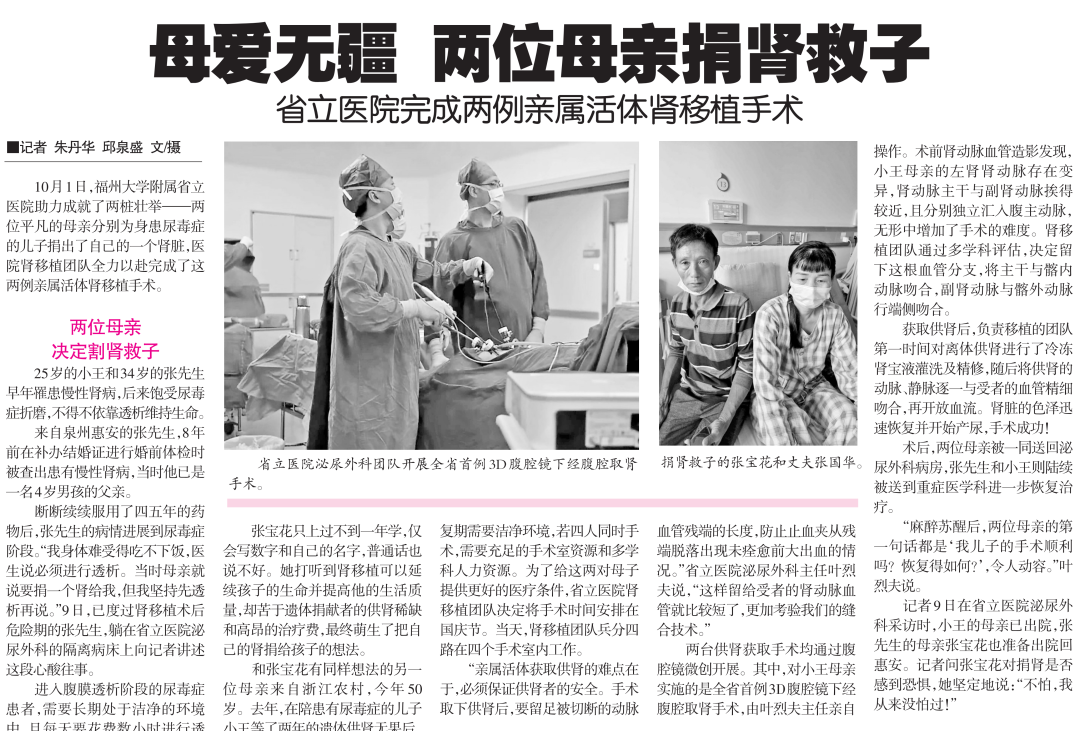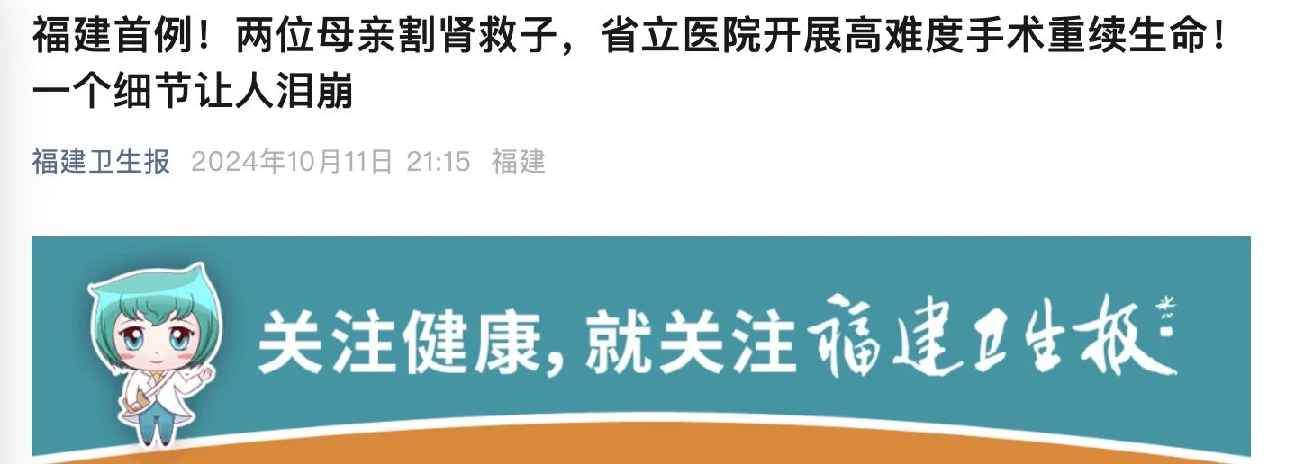 【泌尿肾病医学中心】福建首例!两位母亲割肾救子,高难度手术助力重续生命|亲属活体肾移植