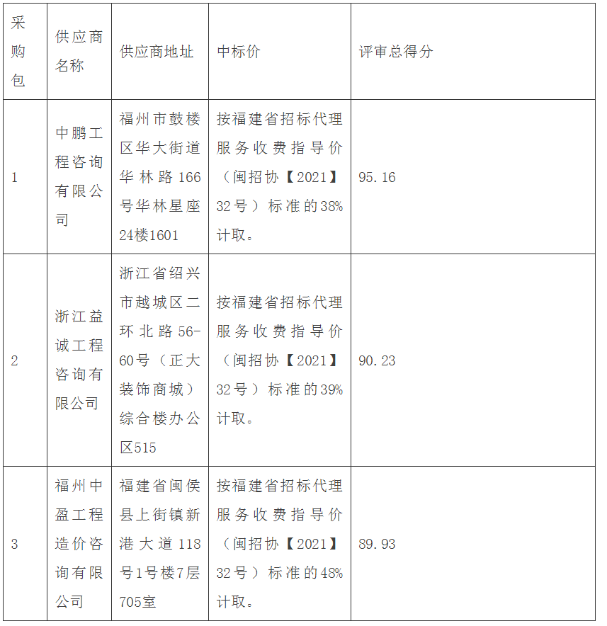 代理服务费专用账号:351008010010141002762;开户名称:福建昇华工程造价咨询有限公司;开户行:交通银行福建省分行营业部。