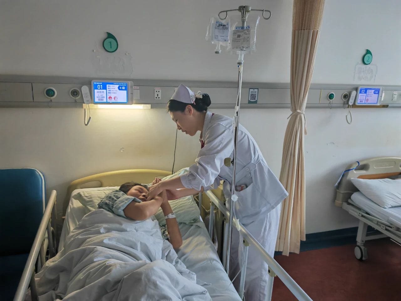 住院期间,医务志愿者们陪同锅盔阿姨顺利完成各项检查。陈巧副主任医师根据她的血检报告,针对白细胞低、贫血、缺钙的情况为阿姨进行相应调理。护理人员们也通过心理疏导、植物芳香疗法、呼吸正念引导等方式来改善阿姨紧张情绪,舒缓压力。