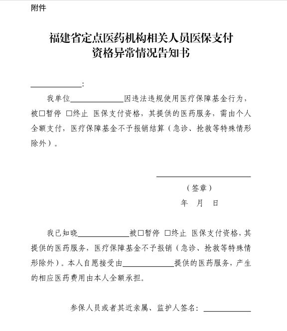 附件:福建省定点医药机构相关人员医保支付资格异常情况告知书