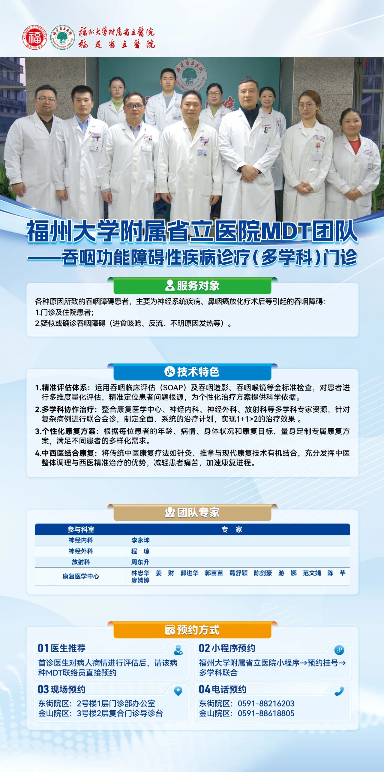 医生推荐首诊后直接预约。“福州大学附属省立医院”小程序→预约挂号→"多学科联合门诊"