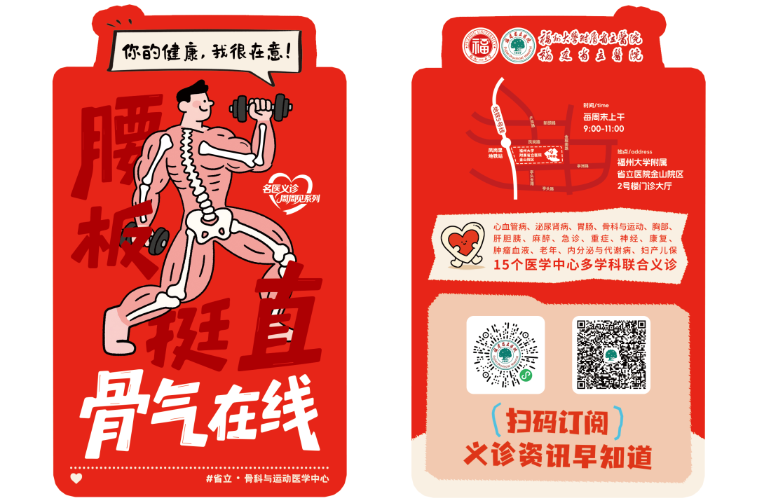 9月13日(本周六)上午,创伤骨科、关节与运动医学、风湿免疫科、护理专科多学科专家团队开展“腰板挺直,骨气在线”主题义诊。不用挂号排队,就能让多学科专家为您“一对一”解疑答惑,精准解决您的“骨头”问题。