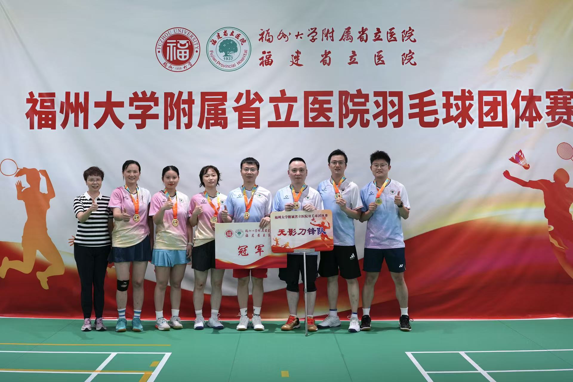 10月19日,福州大学附属省立医院首届羽毛球团体赛在金山院区羽毛球馆成功举办。来自全院八支代表队的近百名选手,以“羽”为媒,在赛场上挥洒汗水、切磋球技,经过激烈角逐,“无影刀锋队”荣获冠军,逗比快乐羽球队获得亚军,羽检未来队与神采飞扬队并列季军。医院党委委员、省急救中心副主任、工会主席叶阿琴为获奖队伍颁奖。