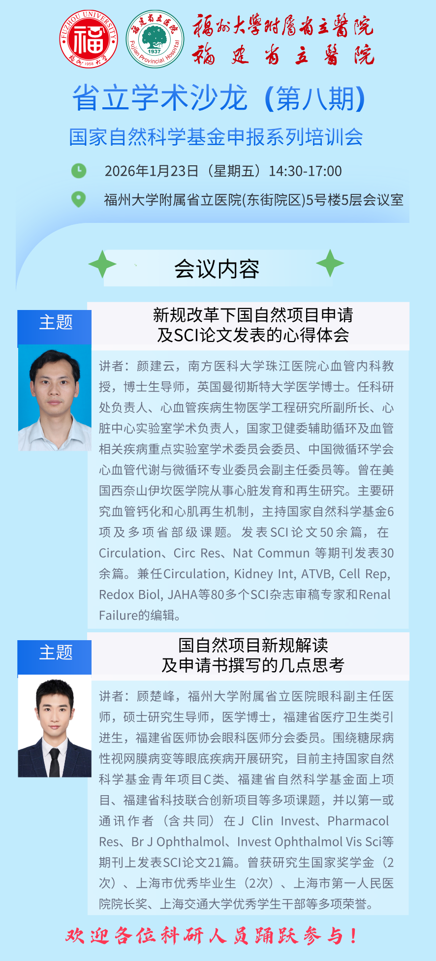 省立学术沙龙(第八期)|国家自然科学基金申报系列培训会