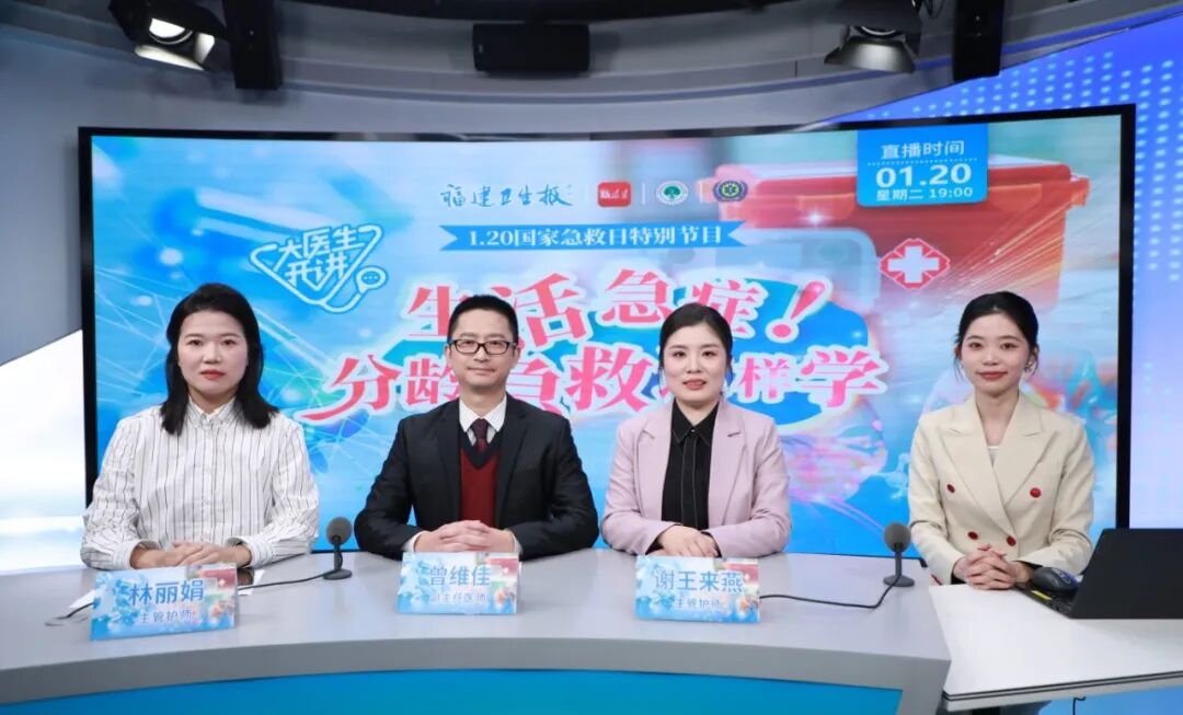 1月20日国家急救日当天,福州大学附属省立医院、福建省急救中心急诊科副主任医师曾维佳、主管护师林丽娟、主管护师谢王来燕做客《大医生开讲·福州大学附属省立医院》直播间,通过现场科普和实操演示拆解全龄层急救技巧,为网友送上实用救命指南。