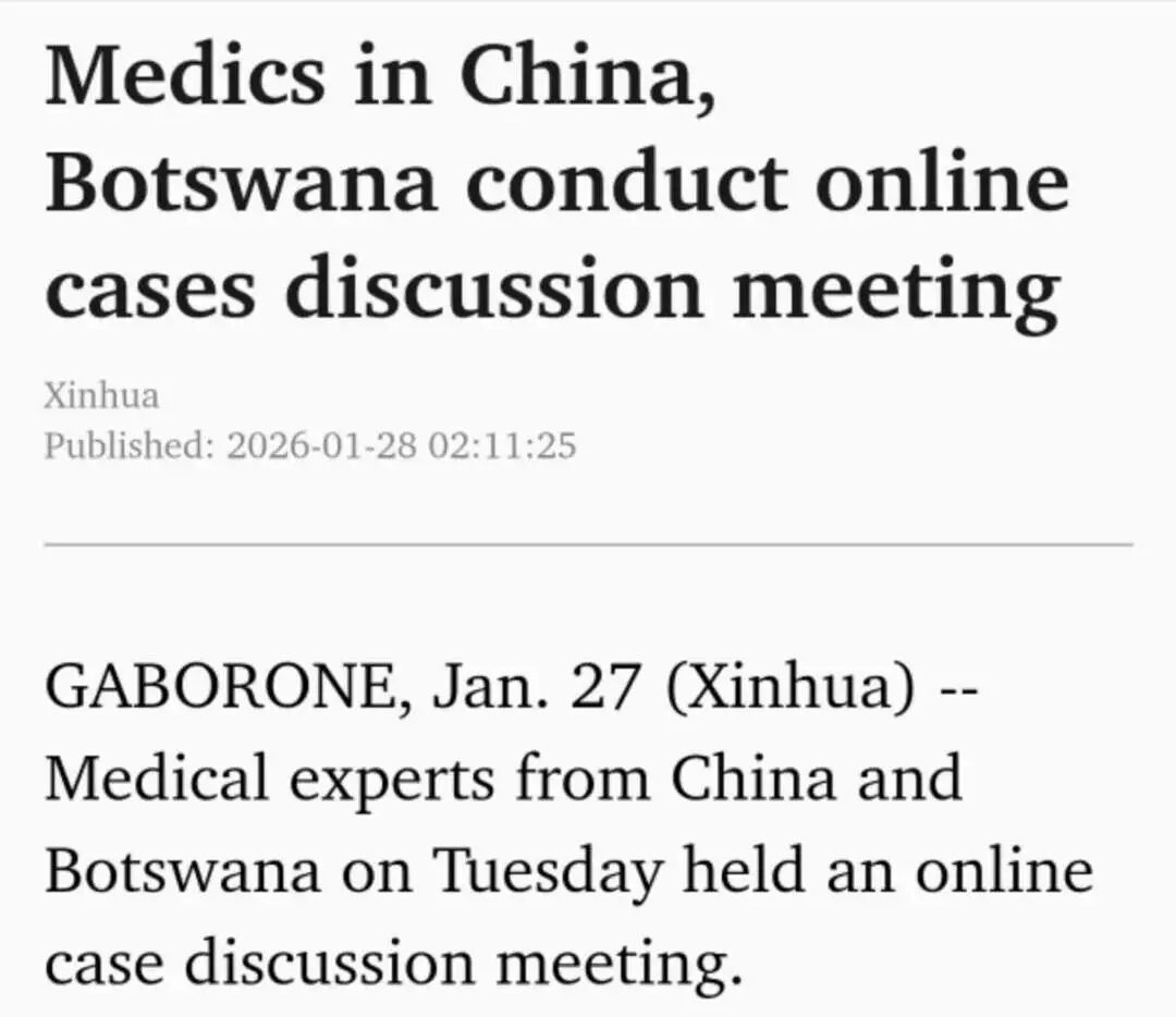 1月27日,福州大学附属省立医院互联网医院平台,成功举办了一场中国与博茨瓦纳的跨境多学科诊疗(MDT)线上会诊。作为“健康丝绸之路”建设的新实践,此次会诊连接了博茨瓦纳弗朗西斯敦仰加圭转诊医院,是中博两国医疗机构在借助互联网医院平台开展跨境协同诊疗的一次积极探索。