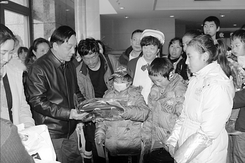 本报讯 1月21日,在我院接受手术治疗的4名西藏林芝地区先天性心脏病儿童顺利康复出院。出院前,林才经院长亲自看望患儿及其家属,并送去书包和慰问金(如图)。这是我省首次接收西藏先心病儿童来闽治疗,作为省卫生厅指定医院,我院接收了其中4名患儿。