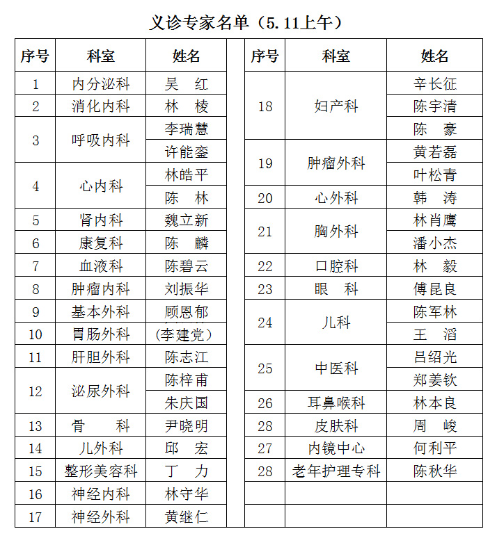 义诊三天内将有160多名福建省立医院、福建省立医院南院专家参加,涵盖内、外、妇、儿以及耳鼻喉、眼、口腔、中医科等各个专业(义诊专家每日安排详见省立医院网站公告以及南院门诊告示牌;义诊专家名单如有变动,谨以当日出诊专家为准)。