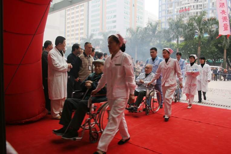 12月9日上午,福建省立医院内科系统部分患者在医护人员的护送下,高高兴兴地从该院旧病房转入新落成的综合病房大楼,从而成为省委、省政府为民办实事重点工程——省立医院改扩建工程的第一批受益者。