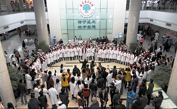 合唱团主要负责人、我院宁养院张晓芹主任说,希望借元宵佳节以快闪合唱这种新奇温馨的方式,展现医护人员的风采,拉近医护人员与患者的心理距离,并祝福所有病人以及家属身体健康。