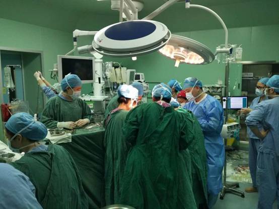 2月13日下午3点,邱萌被送入手术室。如术前预计,孕妇术中出血20000毫升,相当于人全身的血液换了4~5遍。术中启动了大量输血方案,总共输入了97人份的血。妇产科杨茵、辛长征主任快速剖宫产,并切除了全子宫,省立医院本部来增援的泌尿外科主任高祥勋和其他两名泌尿外科主任,将胎盘和膀胱小心翼翼地剥离开来,并切除了部分膀胱,再行膀胱重建缝合术。这部分足足做了4个多小时。