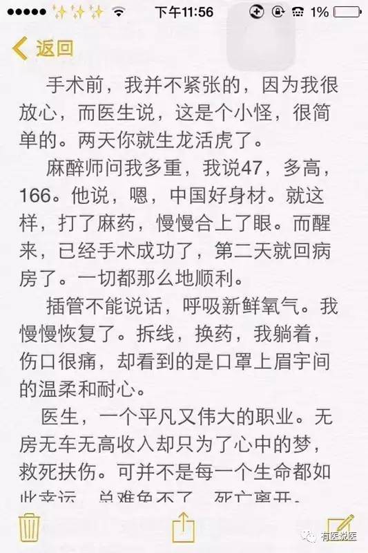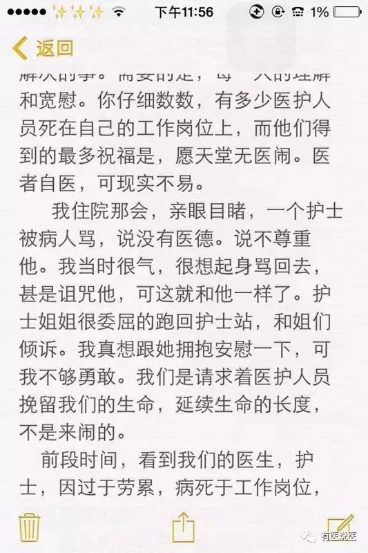 她说:医生不是有的新闻中那样硬,但很少有患者站在医生的角度去看。希望自己的住院经历对医生有一个不一样的解读。也能温暖医生的心!