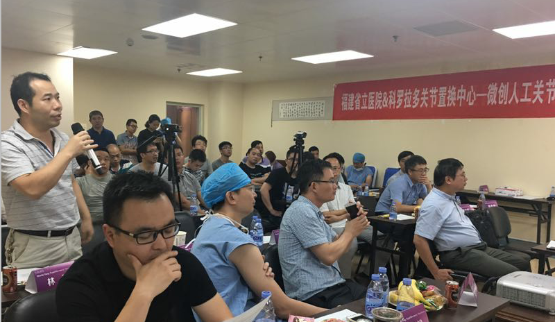 我院骨二科徐杰主任演示“肌肉不切开的微创全膝关节表面置换术”,高超的手术技巧获得参会代表的一致好评;林院、汤发强副主任医师讲解微创全髋、全膝关节置换术的手术经验、技巧;罗奋棋、俞国雨主治医师分享微创关节置换的疑难病例。会议还邀请福建医科大学附属第一医院、福州南京军区总院、福州市二医院等省内著名专家围绕微创及快速康复等热点问题进行专题演讲及病例讨论,现场学术氛围浓厚。