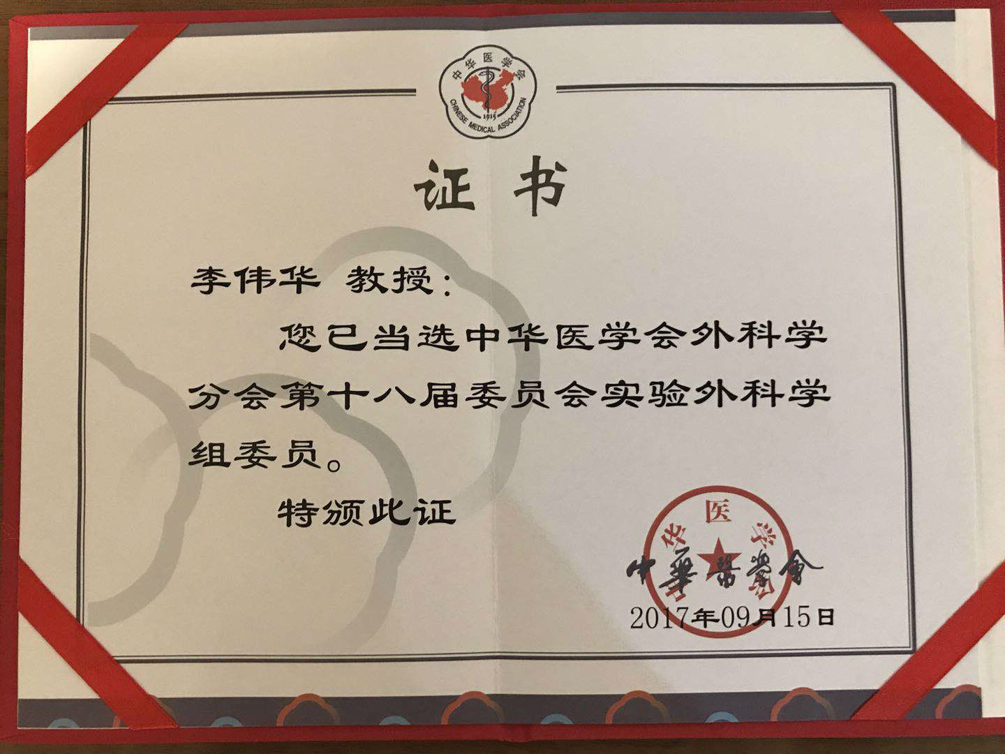 在刚刚落下帷幕的第十八届全国外科学学术大会上,我院李伟华主任医师在实验外科学组换届选举中再次当选为实验外科学组委员并在外科年会上主持学术会议。
