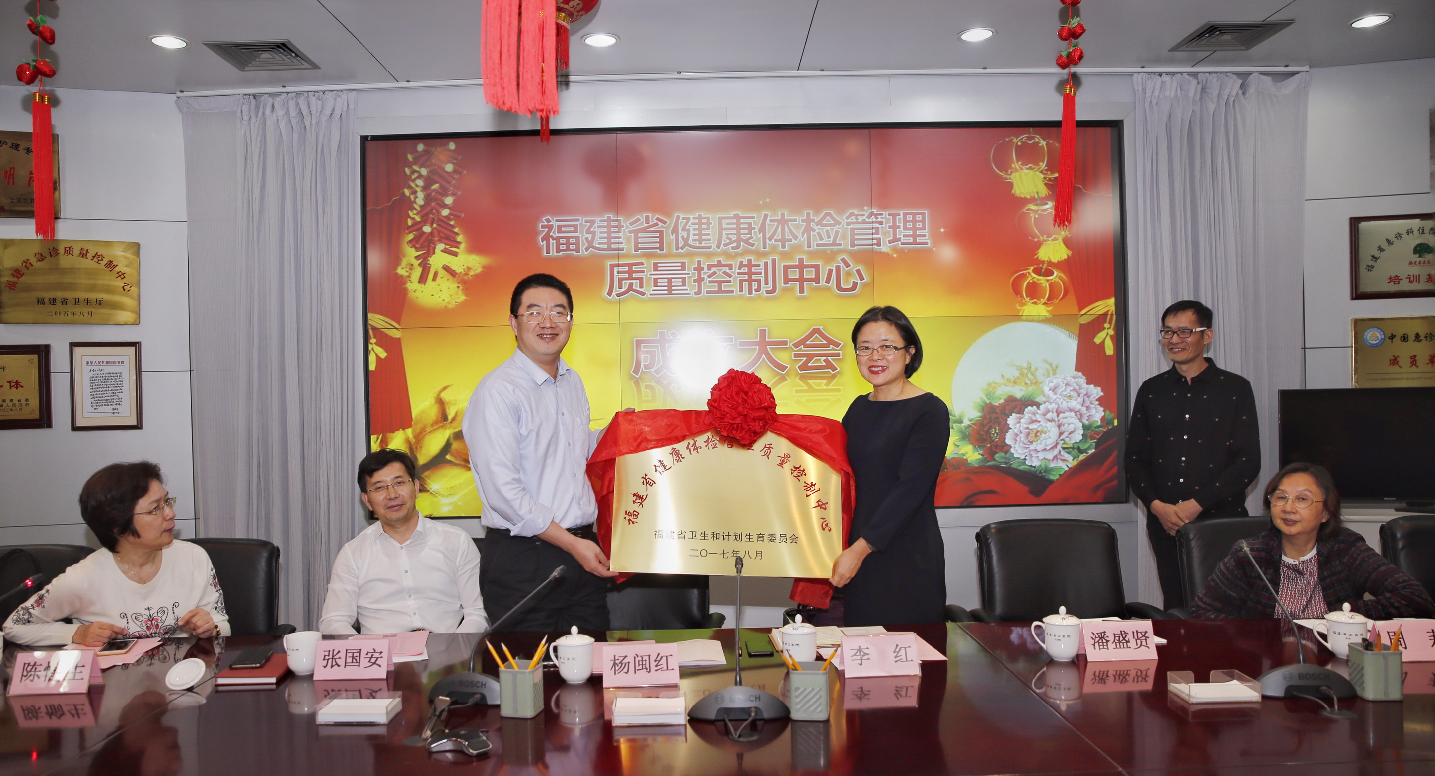 会上,杨闽红副巡视员为中心授牌,他指出质控是政策制定的依据,是医院工作的指南。福建省的健康体检机构层出不穷,行业监督及管理薄弱,中心成立后,要先摸底排查,发现存在的问题,加强安全管理,促进质量改进和提升。中心的工作既要参考和学习其他省份及其他质控中心的经验,也要结合我省实际情况,规范体检机构,落实质控工作,为群众医疗安全作保障。