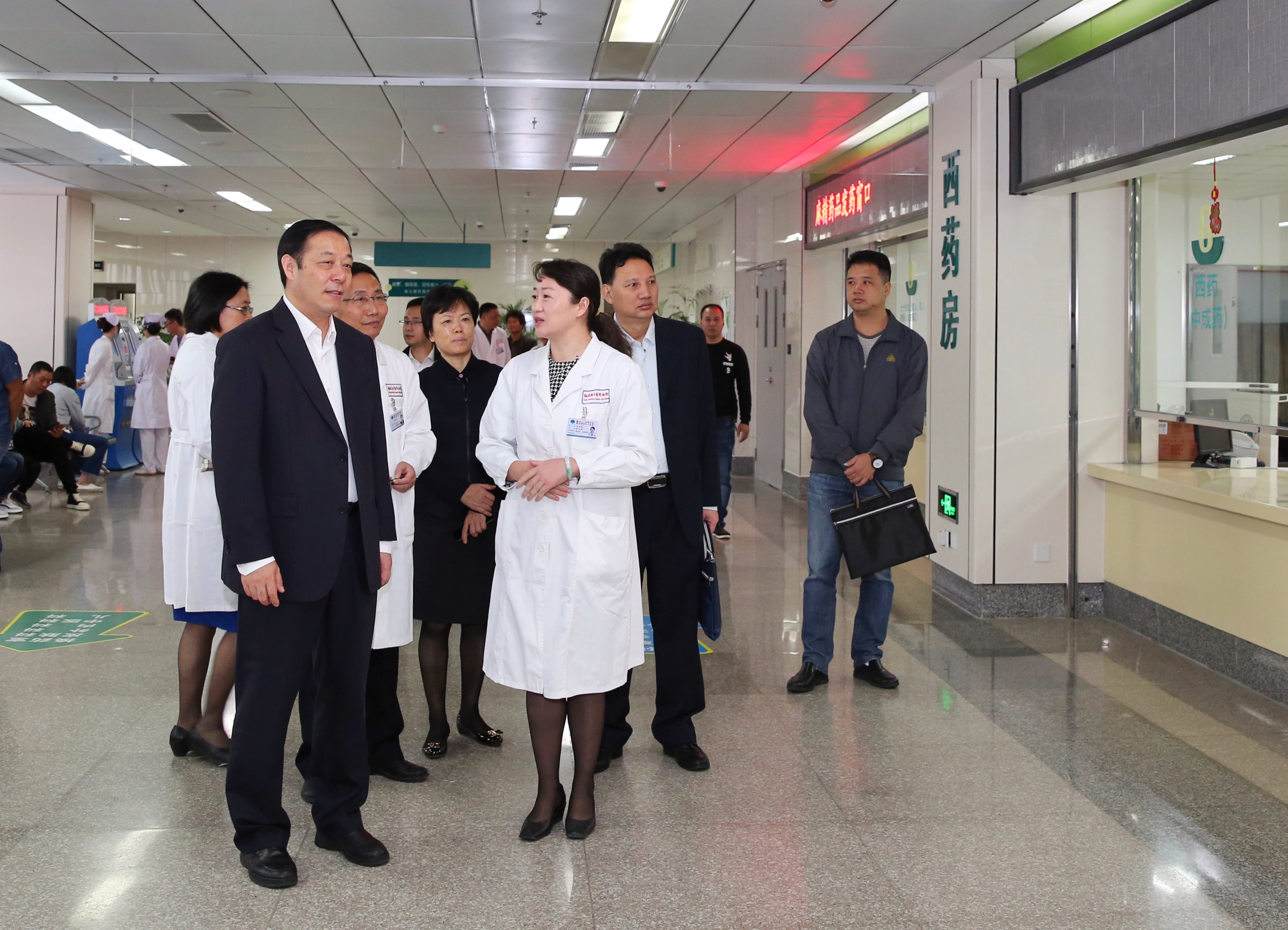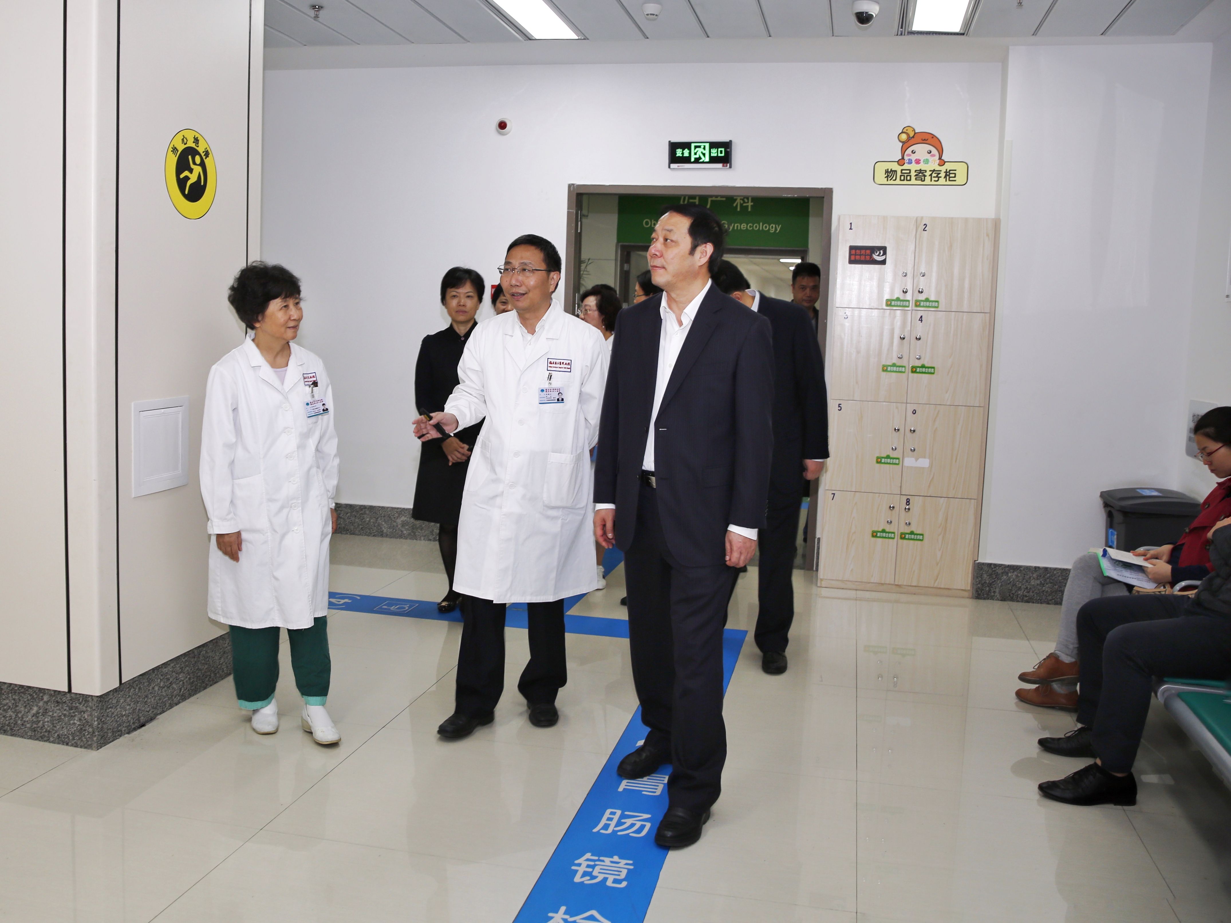 杨贤金副省长一行走访了儿科、妇产科门诊、孕妇学校,紧急救援移动方舱医院,消化内镜中心,手术室,国际体检部等;听取了朱鹏立院长关于医院运行情况及二期建设规划汇报;随后来到妇产科病房,与各科室医护人员代表围坐在一起,宣讲党的十九大精神。