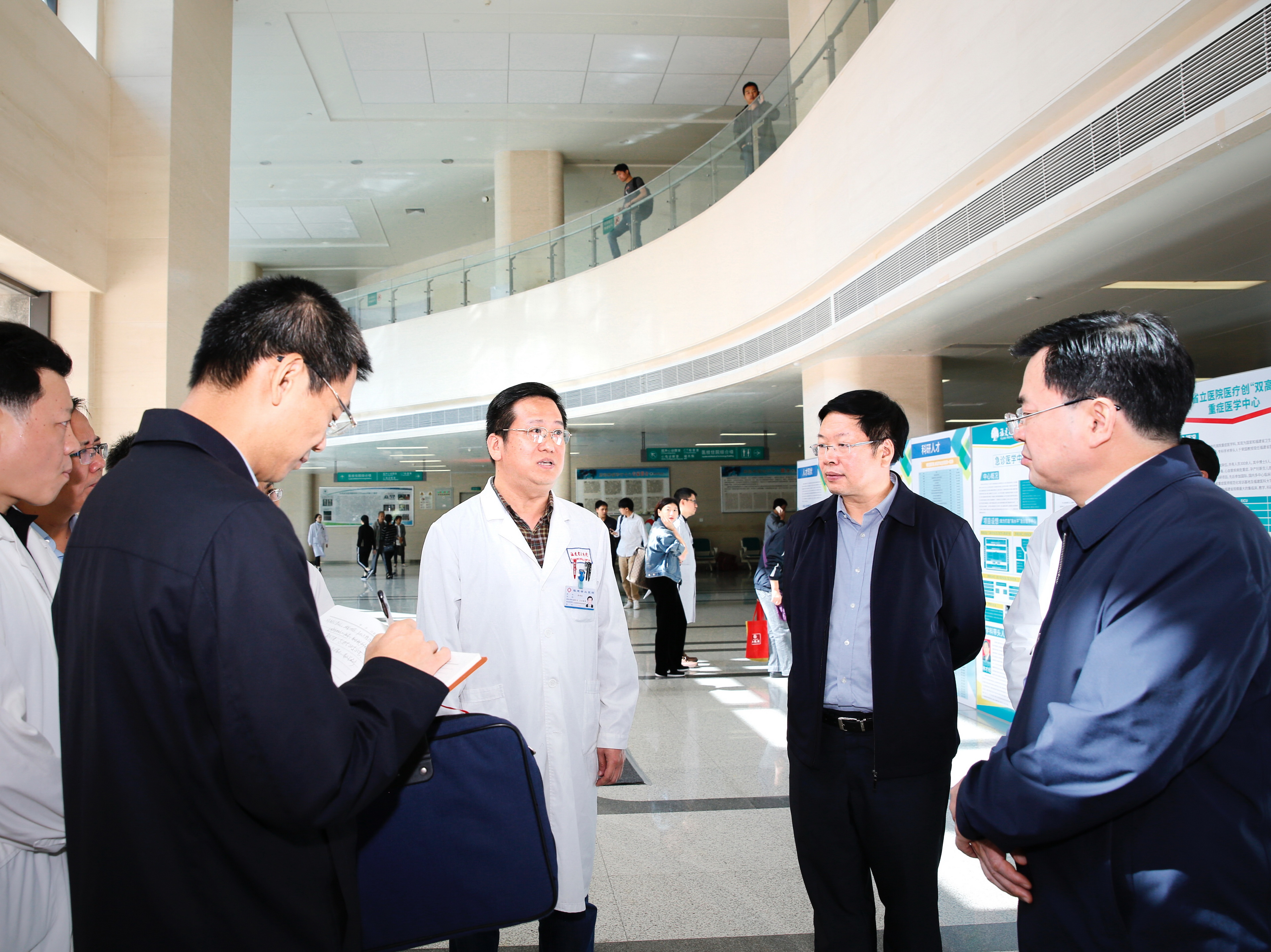 11月9日,省委常委、组织部部长胡昌升到我院调研人才工作,并慰问一线医护人员。省委组织部部务会议成员、省委非公企业和社会组织工委专职副书记吴汉斌,省人社厅副厅长王强,省卫生计生委副主任陈晓春参加调研。