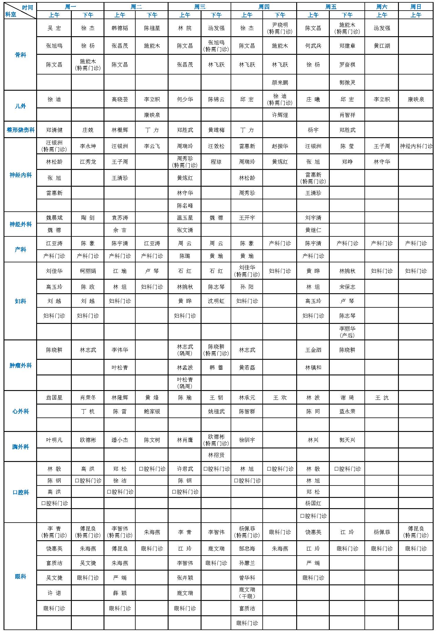 【收藏】福建省立医院、省立金山医院7月专家门诊一览表