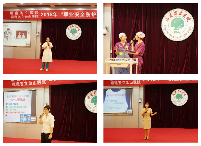 经过前期预赛紧张的角逐,14名选手脱颖而出进入决赛。选手们围绕针刺伤、医院相关性感染、化学危害、工作场所暴力、噪音、腰背肌损伤、下肢静脉曲张、员工心理健康、安全作业等主题,声情并茂地讲述职业安全防护中的亲身经历、分享职业安全防护的管理经验、工作重点与标准流程等,精彩的演讲使观众感同身受。