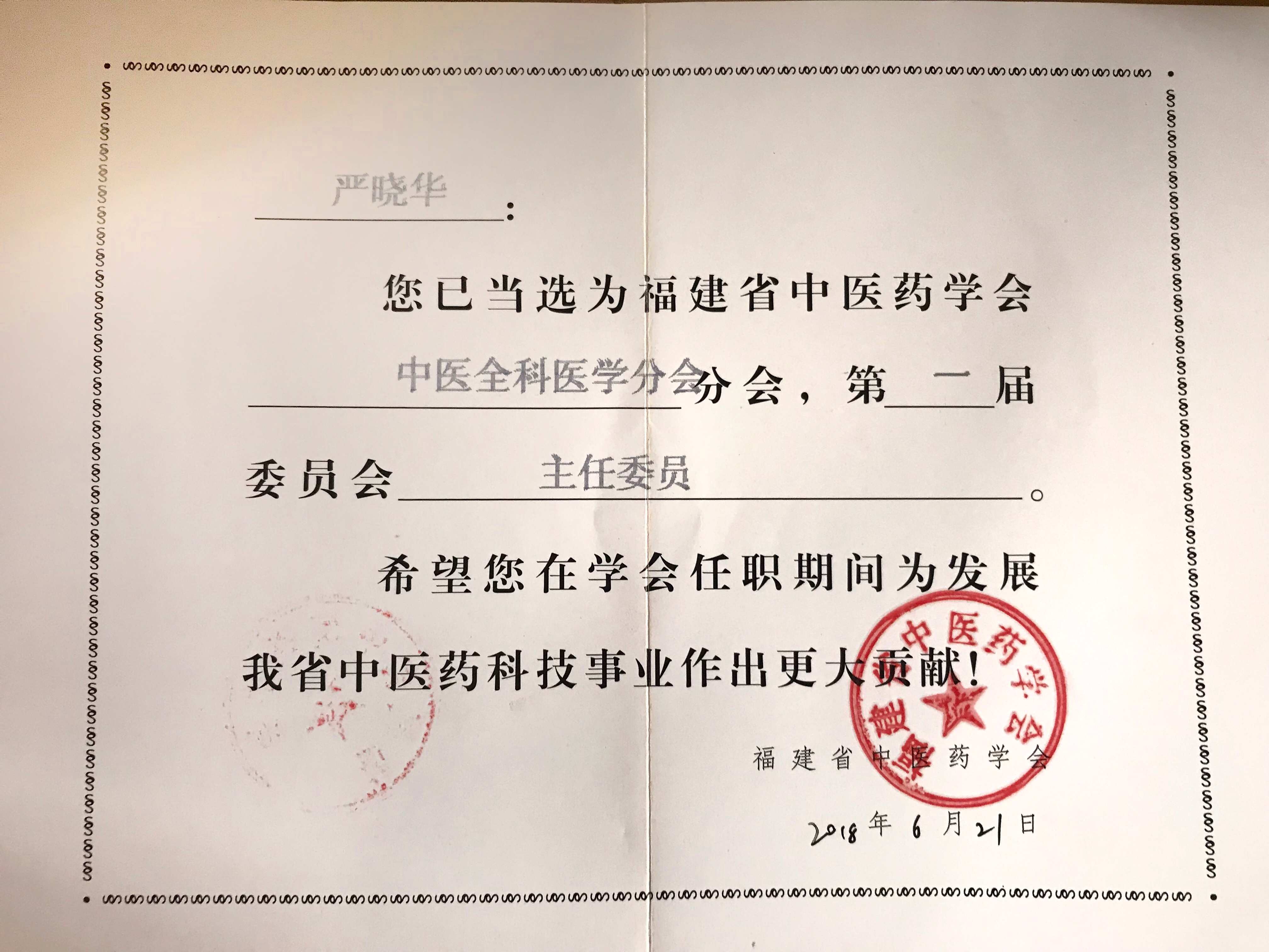 【省立动态】严晓华主任医师当选福建省中医药学会中医全科医学分会主任委员