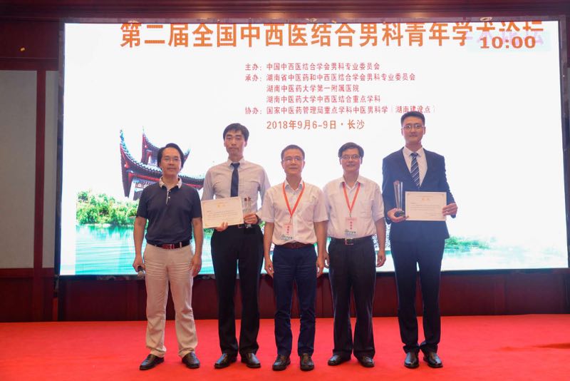 全国中西医结合男科主任委员张敏建教授为获奖者颁奖