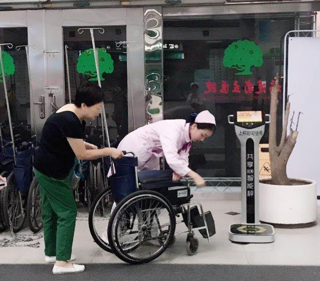 ▲门诊迎送岗护士正在热心协助就诊患者使用轮椅。