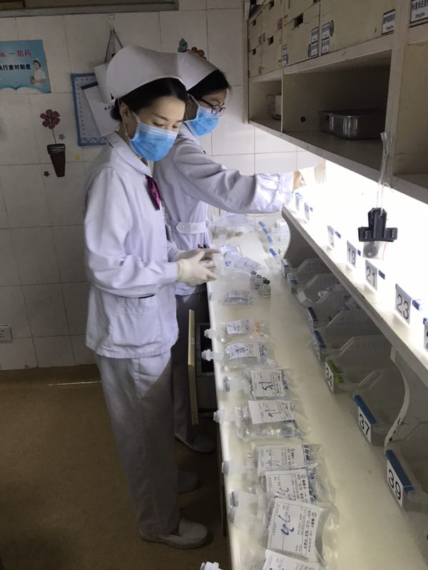 ▲19区护士们正在加药。