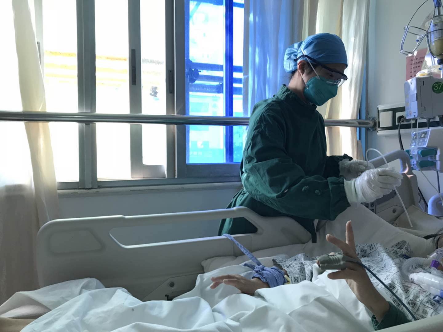 ▲31区重症医学一科收治患者,护士们为患者接瓶、吸痰。