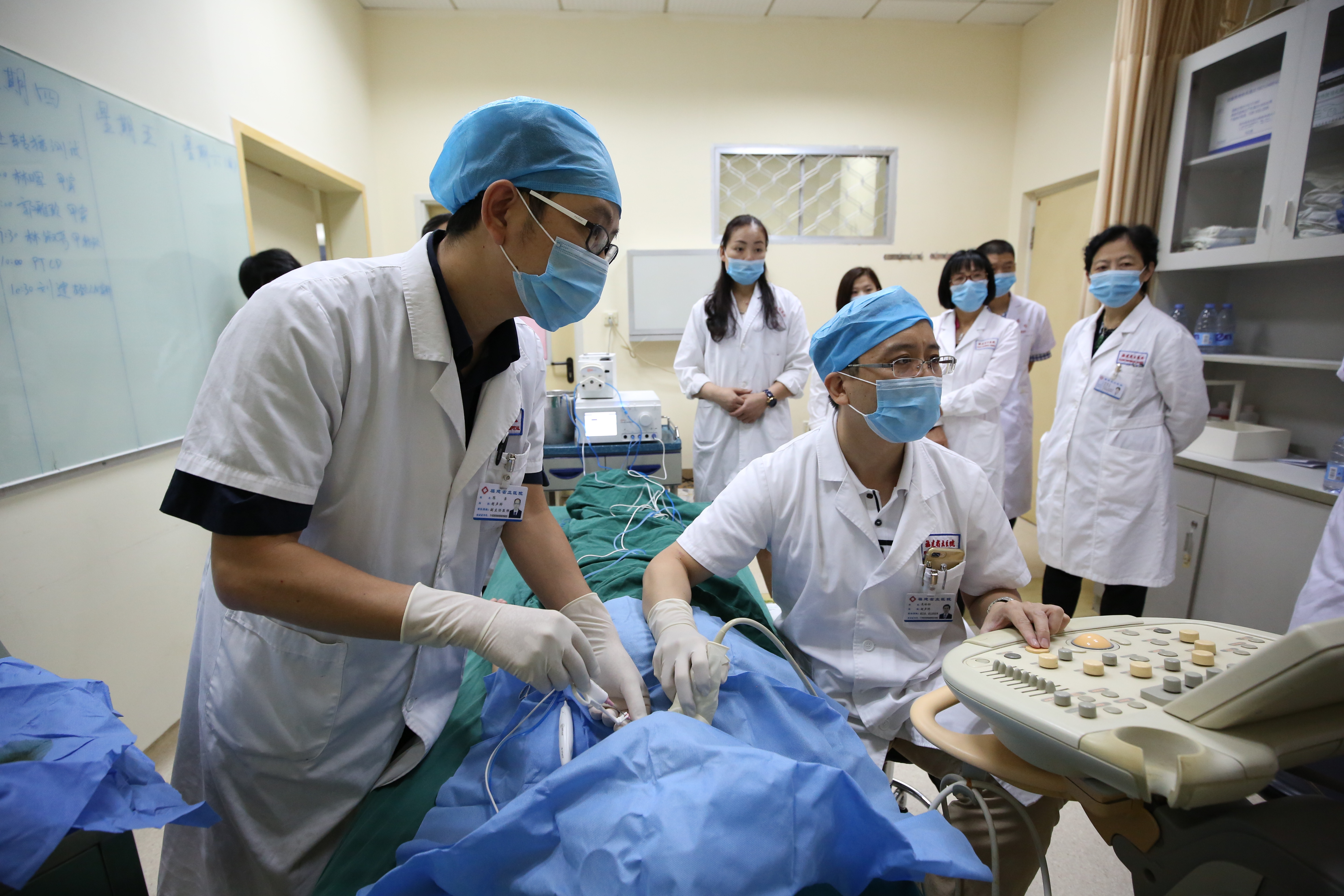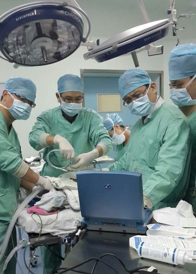 一次次的联合会诊,让吴松松开始思考如何系统化的建立介入超声在多学科诊疗模式中的重要地位。目前团队已依托日间病房及相关临床科室病房,形成了甲状腺结节、甲旁亢、小肝癌、子宫肌瘤及肌腺症的早期检出、早期治疗的诊疗模式,这些技术在治疗肿瘤的同时也保护了正常的脏器,实现精准微创治疗,且治疗周期短,深受患者欢迎。除此之外,团队还与急诊抢救室联动,对急诊入院患者快速评估、合理治疗,及时处理急性心包填塞、大量胸水、急性重症胆管炎等急症,为患者下一步治疗打好基础。