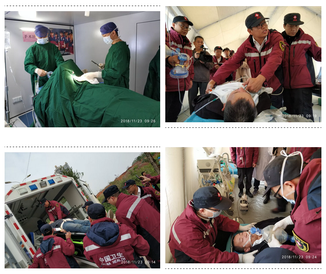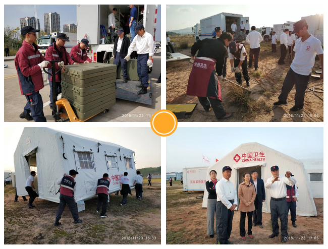 22日清晨7点队伍集结出发,当天下午4时到达江西瑞金,与国家紧急医学救援队(江西)会合。长途跋涉的疲惫感,丝毫未影响队员们的士气,到达目的地后,大家按照演练方案要求,密切配合,分工明确,2个小时内完成了营地建设。瑞金市相关领导到营地参观调研。