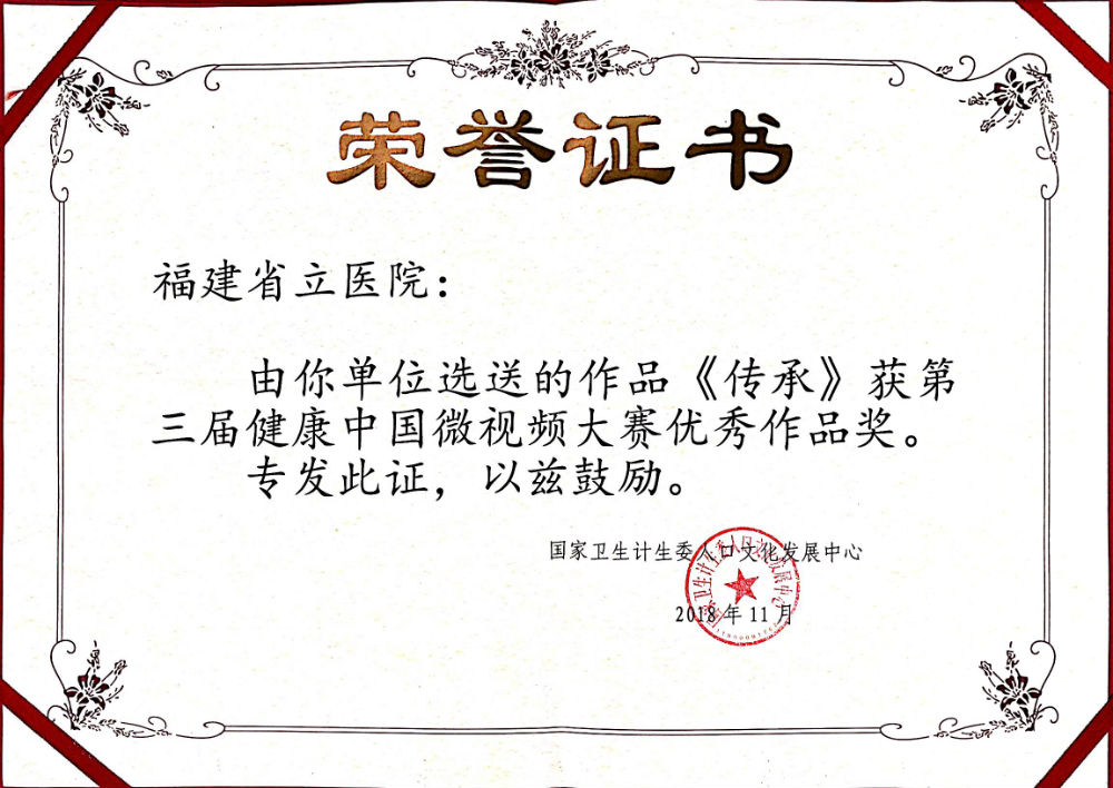 11月29日,第三届健康中国微视频大赛获奖作品揭晓,我院选送的微电影《传承》从2000余部参赛作品中脱颖而出,获优秀作品奖。