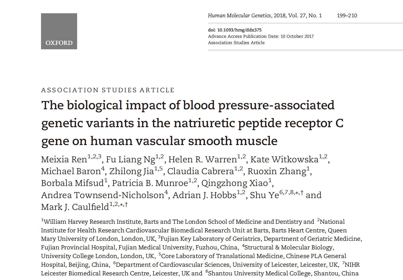 作为该课题组的主要成员,我院老年医学中心的任美霞博士以第一作者或共同作者,近年来相继在国际顶尖医学杂志《Nature Genetics》《Human Molecular Genetics》《Hypertension》等发表6篇研究成果,累计影响因子(IF)达77.34分,单篇最高为31.62分。2018年,任美霞博士入选第一批福建省B类引进高层次人才(创业创新领军人才),是我省卫生健康系统入选高层次人才中最年轻的博士。
