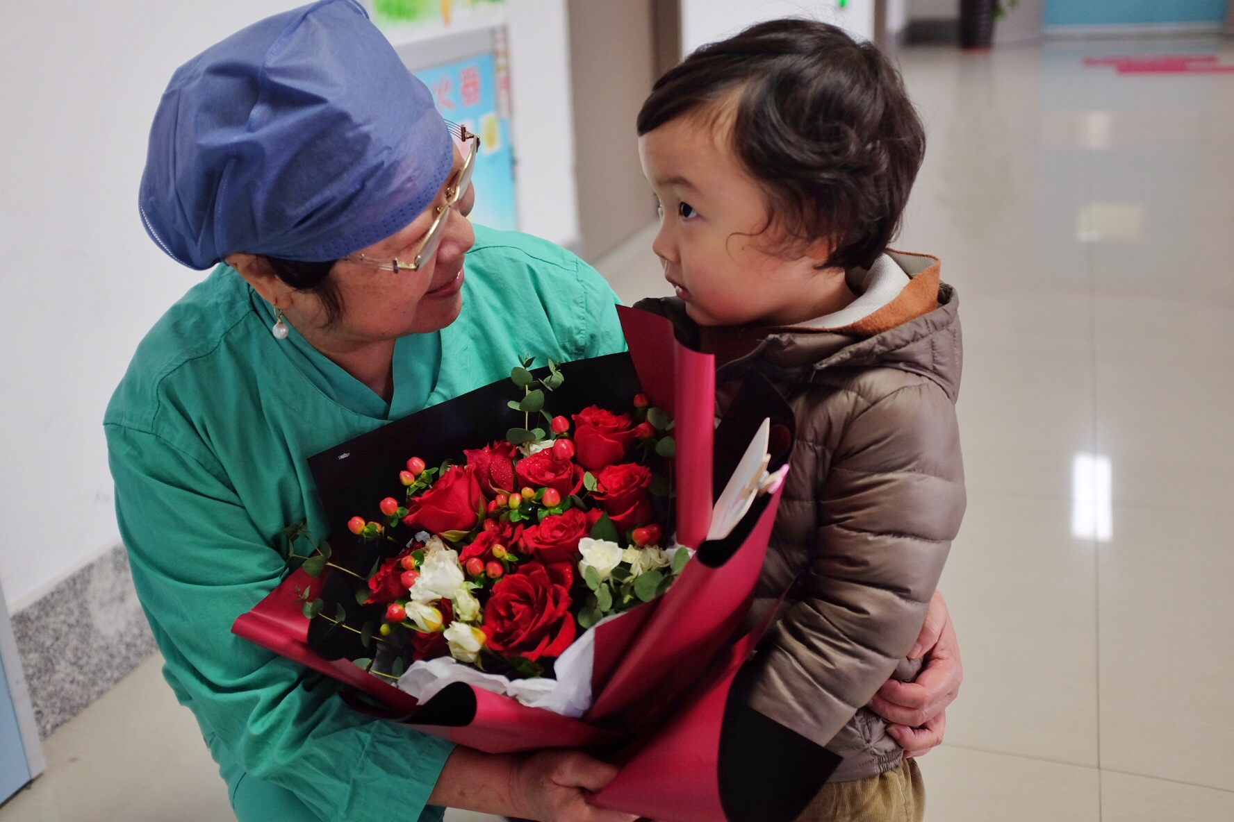 3月8日也是这位小宝宝的生日,每年的今天,他都和家人一起来到福建省立金山医院妇产科,看望杨茵主任医师,当年他母亲因前置胎盘、情况危急,是杨茵主任医师及团队紧急行剖宫产手术,化险为夷。